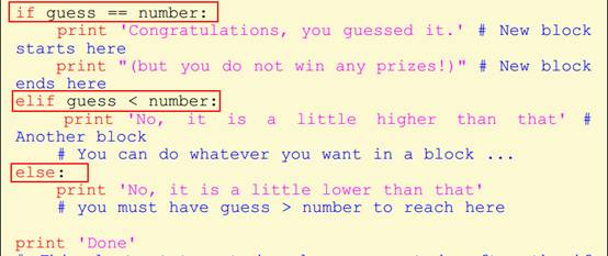 if语句用来检验一个条件,如果条件为真,我们运行一块语句(称为 if-块),否则我们处理另外一块语句(称为 else-块)。else 从句是可选的。