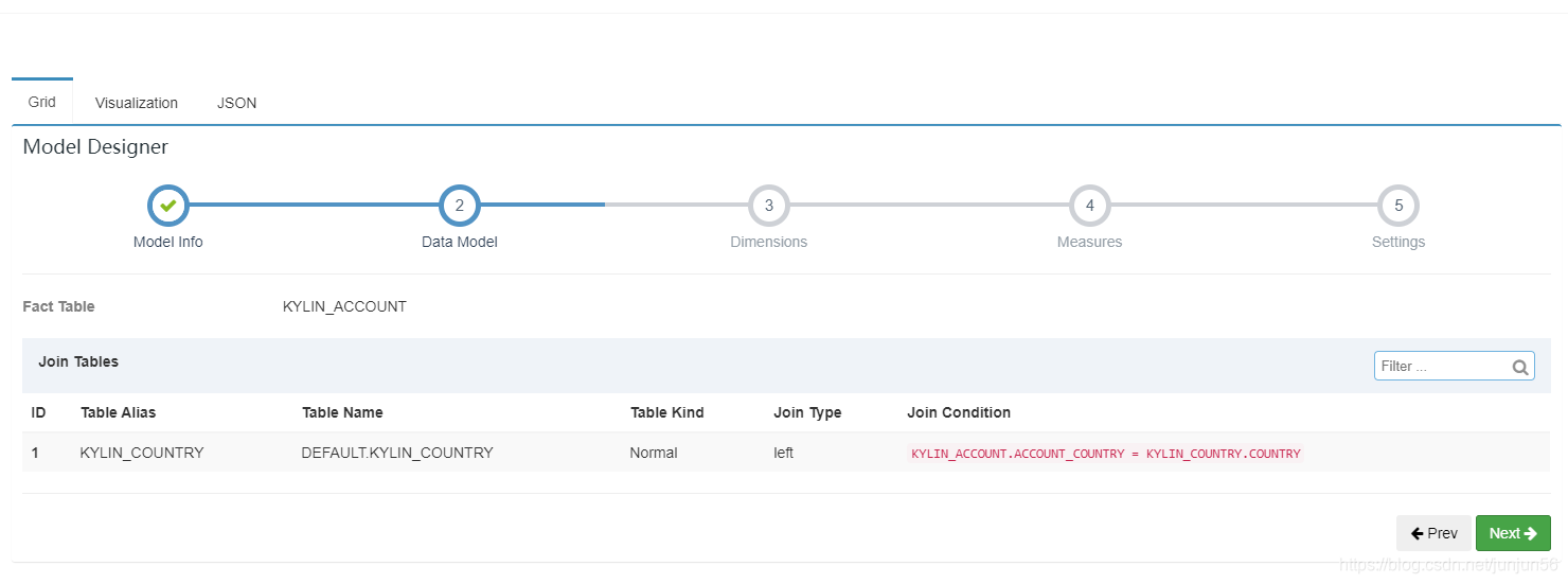 选择事实表KYLIN_ACCOUNT 和 维度表KYLIN_COUNTRY