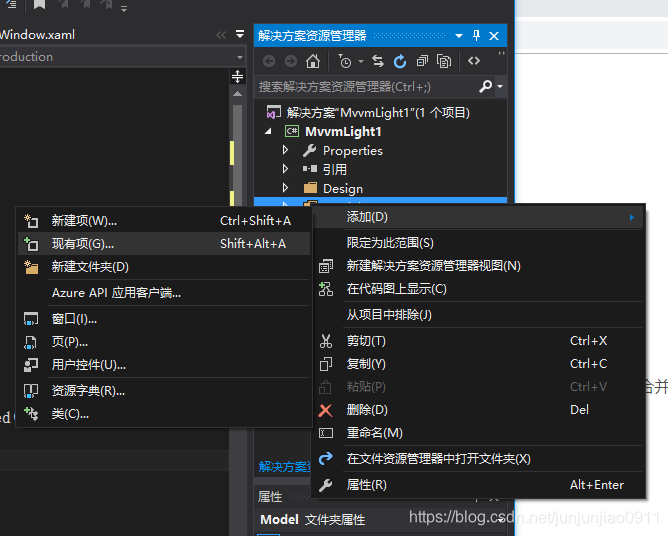 单击“Model”->鼠标右键选择“添加”->新建项->类