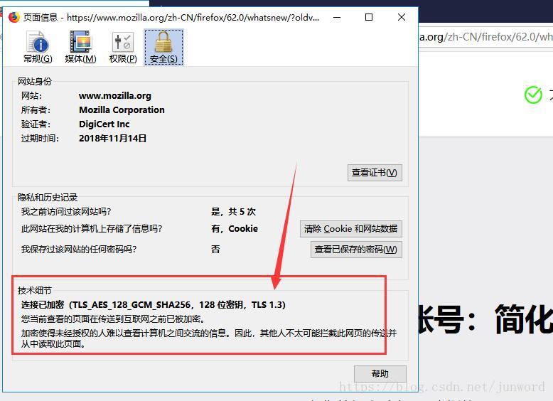 然后找了很多资料,发现是因为 WinDows sever 的IIS默认使用的是ssl2.0证书,而小程序要使用的是TLS 1.2切记,要1.2版本,如果版本高是不行的。查看连接类型方法,火狐浏览器打开后,点击证书位置: