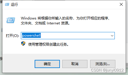 第一步:win+R 输入powershell回车打开 PowerShell :