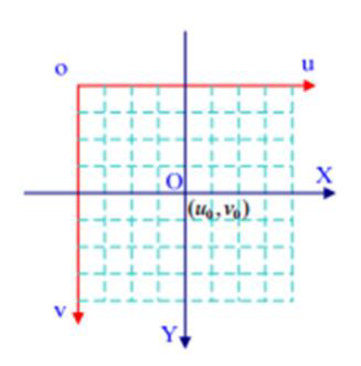 从像素坐标系到物理坐标系的转换公式为:\begin{cases} x = (u - u_0) \times p_x \\ y = (v - v_0) \times p_y \end{cases}