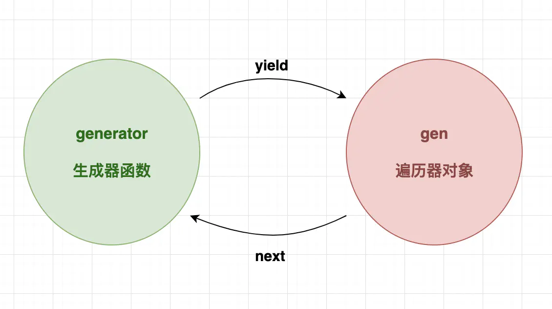 gen对象拥有next()方法,调用next方法会得到结构为一个内含value和done属性的对象,value是yield后面表达式的值,done是遍历是否结束的标志位。