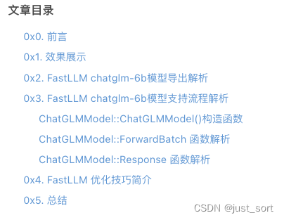 本文主要是对FastLLM做了一个简要介绍,展示了一下FastLLM的部署效果。然后以chatglm-6b为例,对FastLLM模型导出的流程进行了解析,接着解析了chatglm-6b模型部分的核心实现。最后还对FastLLM涉及到的优化技巧进行了简单的介绍。