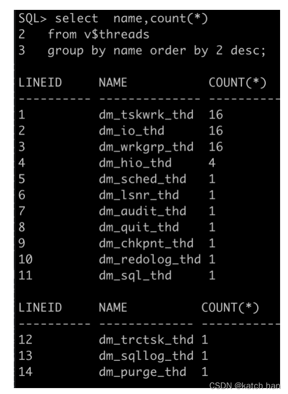 select name,thread_desc from v$threads; 可以看到每个线程的描述