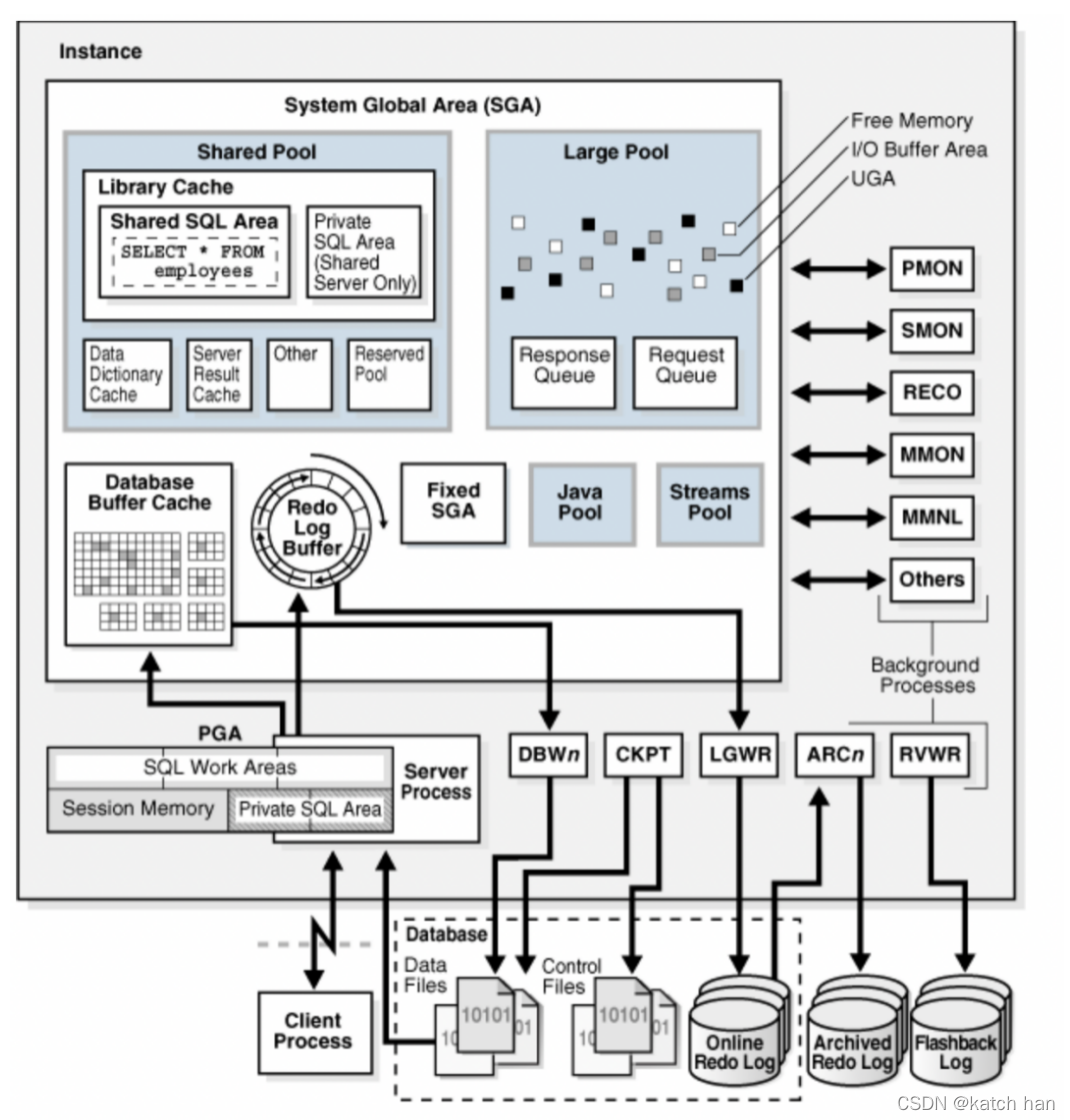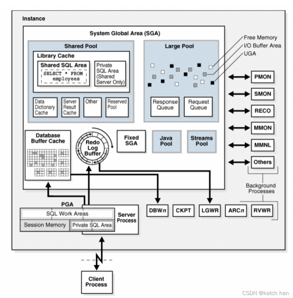 ORACLE使用多个进程来运行一个Oracle数据库代码中的不同部分以及额外的Oracle进程。在数据库实例中的每一个进程都会执行一个特定的任务。但在oracle12C后,开始出现多线程数据库模式,一些进程会以线程模式运行。