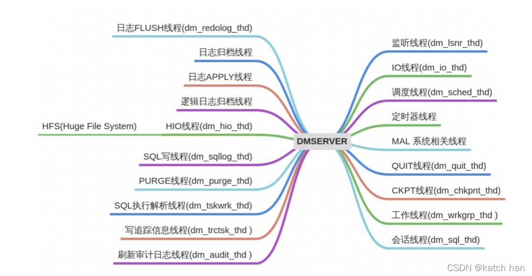 DM 服务器使用“对称服务器构架”的单进程、多线程结构,线程通过一定的同步机制对数据结构进行并发访问和处理。