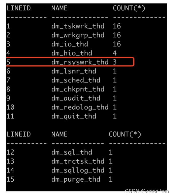 打开其它功能,就会新增相应的线程,如:启用归档后,系统新增了三个dm_rsyswrk_thd线程(Asynchronous archiving thread)