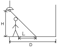 如上图所示的情况,利用直角构造两个三角形,当 Mildleopard 站在离灯泡 x 水平距离时,他与墙的距离即为D−x,那么这两个相似三角形的相似比即为 。我们知道灯泡的高度与 Mildleopard 高度差为 H-h ,然后就可以计算出下面的三角形的较短边的长度为