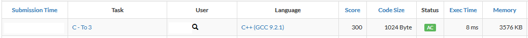 我们知道,判断一个数字能否被 3 整除,我们只需要将该数字的所有构成数字求和,如何这个和可以被 3 整除,那么这个数肯定可以被 3 整除。N 的最大值是 1e18,因此 long long 是可以表示的。本题可以使用 getchar() 逐一读入每个位。