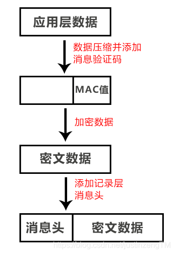 连接状态完成后,TLS记录层协议的主要工作还没完,前面说到,TLS记录层会将上层的消息添加消息头,封装处理后再交给下层TCP传输层,除了添加消息头外,记录层还做了数据分块,数据压缩和数据加密的工作,总的来说,TLS记录层协议的主要工作就是这四部分。