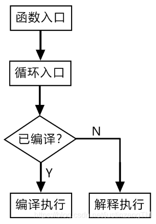 解决上面的问题,虚拟机使用了一种叫OSR(on stack replacement)栈上替换技术,对于函数体内多次循环执行的情况,编译器会记录循环的次数,达到一定的次数后虚拟机就会判定这段代码为热点代码,然后对其即时编译成机器码。