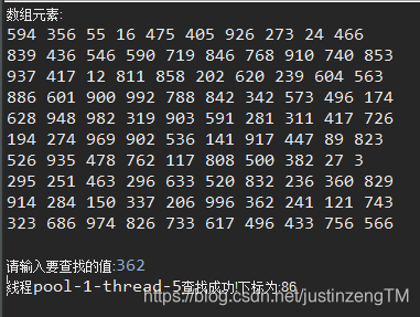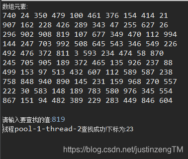 System.out.println("线程" + Thread.currentThread().getName() + "查找成功!下标为:" + i);