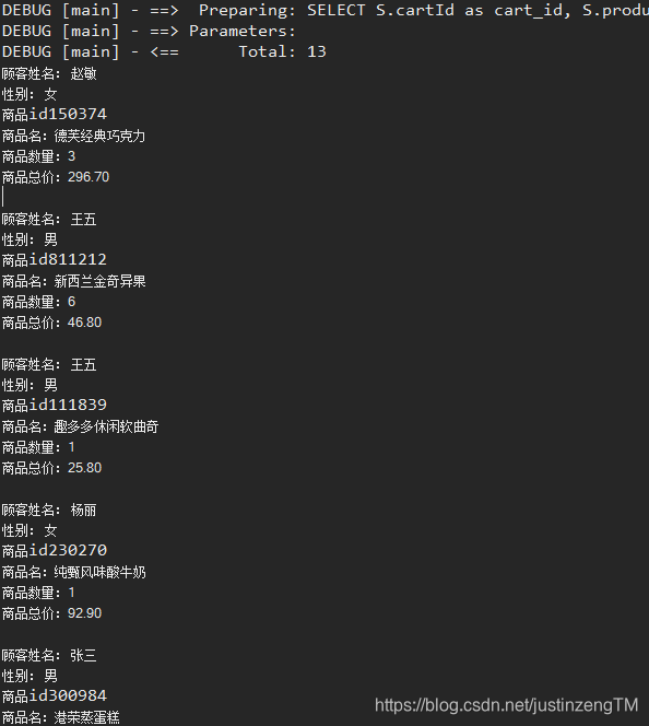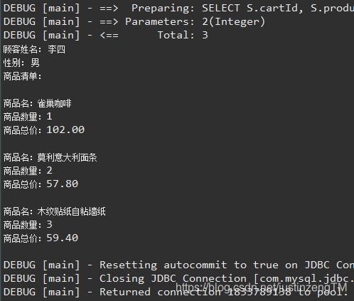 最后写个简单的测试用例,查询购物车id为2的商品清单信息,以及对应的顾客信息。