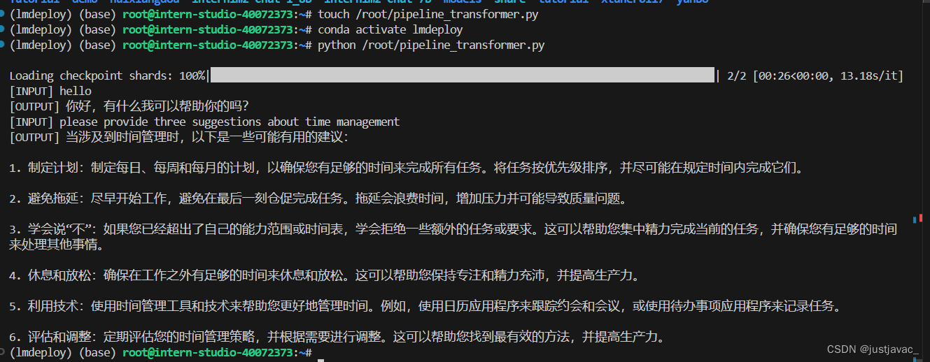 这一小节我们来介绍如何应用LMDeploy直接与模型进行对话。