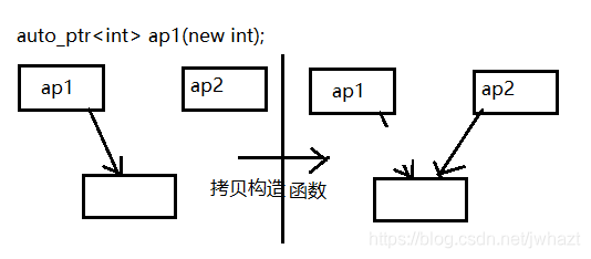 设计思想:auto_ptr智能指针所有权唯一,当旧的智能指针对象赋值给新智能指针对象时,取消旧的智能指针对象的所有权,新智能指针具有这块内存的所有权。所有权:能对这块内存进行操作。