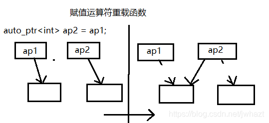 如图:ap1为旧智能指针,ap2为新智能指针。