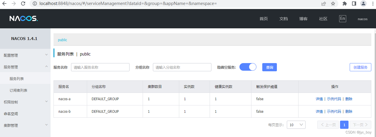访问nacos的管理端:http://127.0.0.1:8848/nacos ,默认的用户名密码是 nacos/nacos