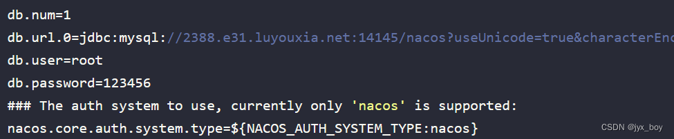 db.url.0=jdbc:mysql://2388.e31.luyouxia.net:14145/nacos?useUnicode=true&characterEncoding=UTF-8&serverTimezone=UTC&allowMultiQueries=true