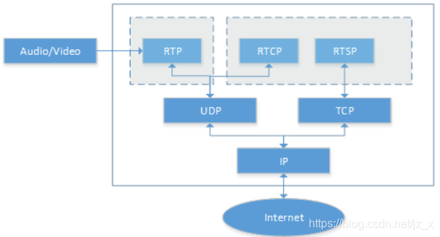 RTSP对流媒体提供了诸如暂停,快进等控制,提供了一个可供扩展的框架,使得流媒体的受控和点播变得可能,它主要用来控制具有实时特性的数据发送,但其本身并不用于传送流媒体数据,而必须依赖下层传输协议(例如:RTP/RTCP)所提供的服务来完成流媒体数据的传送。RTSP负责定义具体的控制信息、操作方法、状态码,以及描述与RTP之间的交互操作。如图二所示。