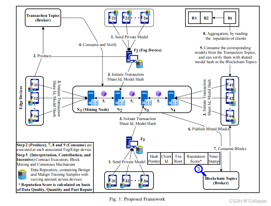 消费和聚合:使用挖掘出来的块,根据声誉选择客户端。此外,还在Transaction Topics中聚合他们感兴趣的模型
