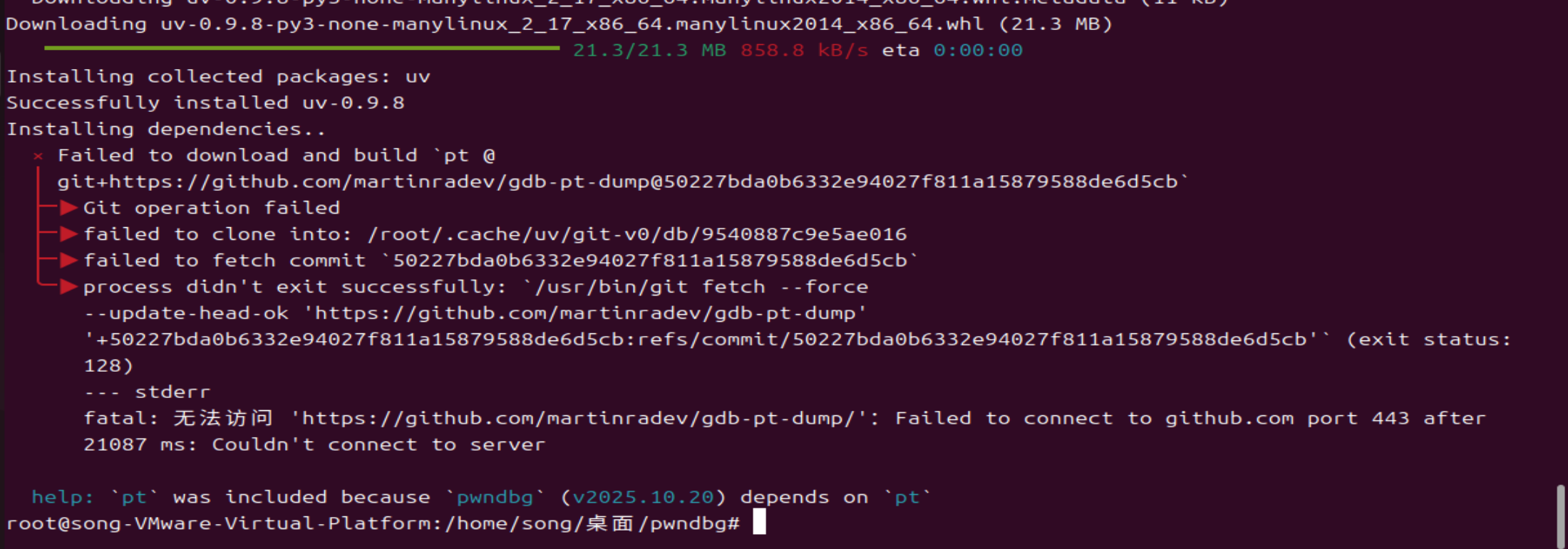 再依次输入git clone https://github.com/pwndbg/pwndbg
