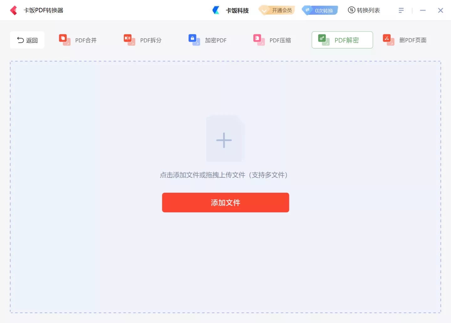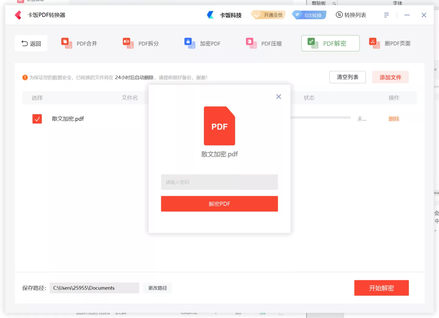 今天我们介绍一下卡饭PDF转换器PDF处理中得解密功能。