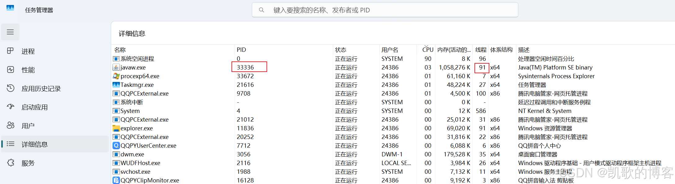 任务管理器-->在详细应用-->表头右击-->选择列-->勾选线程