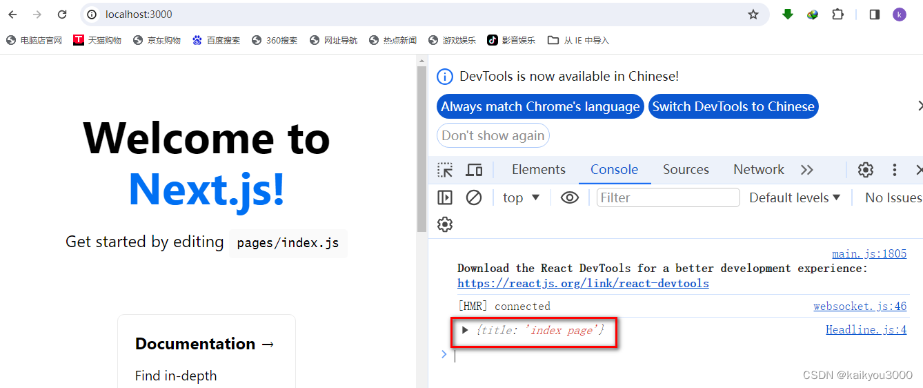 ①在index.js页面使用的<Headline />组件中,设置属性title="index page"