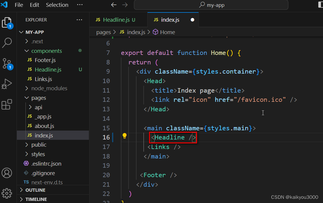 在index.js页面中使用Headline.js组件