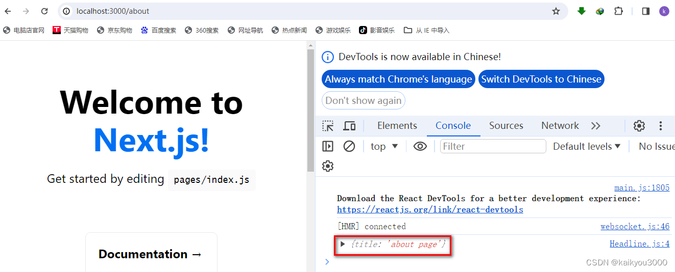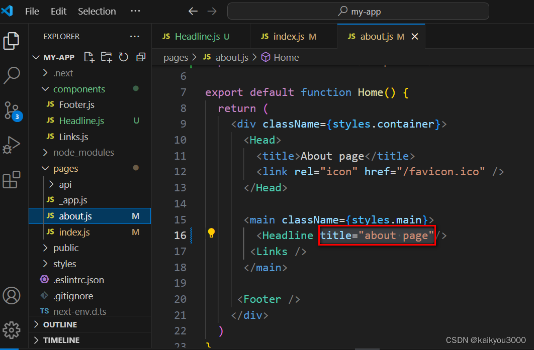 ②在about.js页面使用的<Headline />组件中,设置属性title="about page"