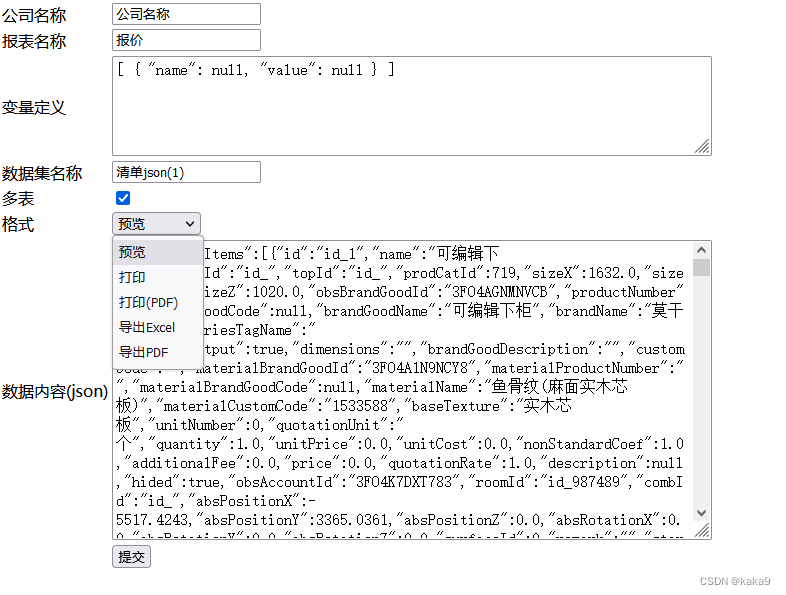 要注意的是页面之间通过Session共享数据。另外,数据传输是使用json格式发送到报表服务的,如果直接把json格式化为对象,这样进入报表非常难处理,建议把json转为datatable.