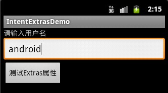 下面的例子在第一个Activity的EditText输入用户名,该年龄保存在Intent的Extras属性中。当单击Button时,会在第二个Activity中显示用户名。
