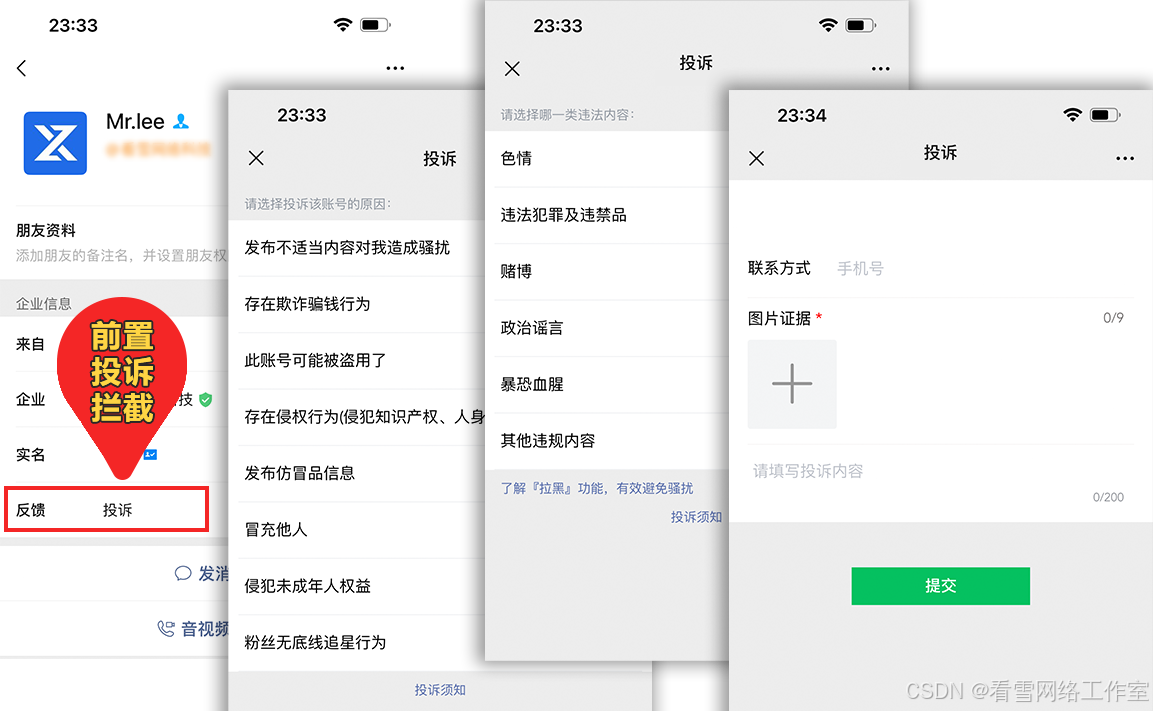 - 拦截官方投诉:客户有不满时,优先通过企业内部通道反馈,避免直接向腾讯举报,减少封号风险;