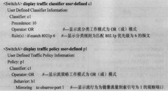 (2)在SwitchA上创建流分类c1,并配置流分类规则为匹配802.1p优先级为6的报文。