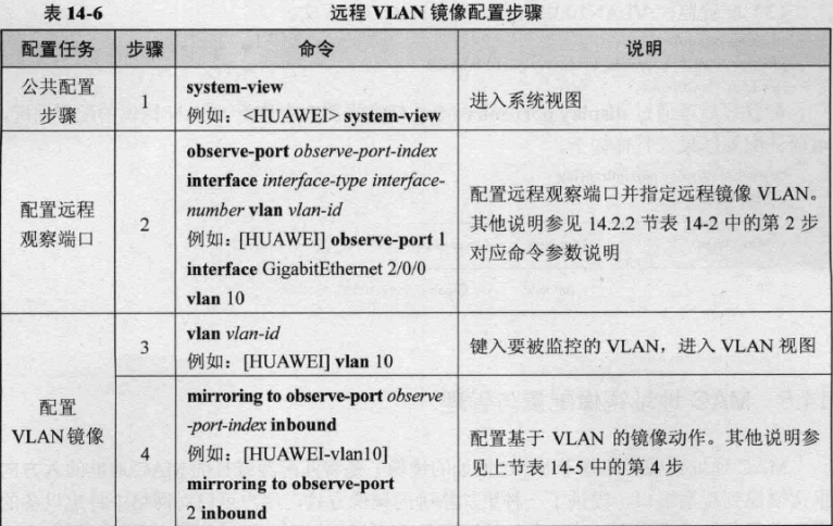 通过配置远程VLAN镜像,可以对某些VLAN中所有活动接口的入方向报文复制到远程监控设备记性分析和监控。在配置远程VLAN镜像前,需确保观察端口所在设备与监控设备之间二层网络互通。