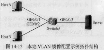 如上图,HostA和HostB通过Gigabitethernet0/0/1与Gigabitethernet0/0/2接口接入SwitchA,HostA和HostB同属于VLAN10。监控设备Server直连在SwitchA的Gigabitethernet0/0/3接口上。现希望通过监控设备Server对VLAN10的所有活动接口的入流量进行监控。