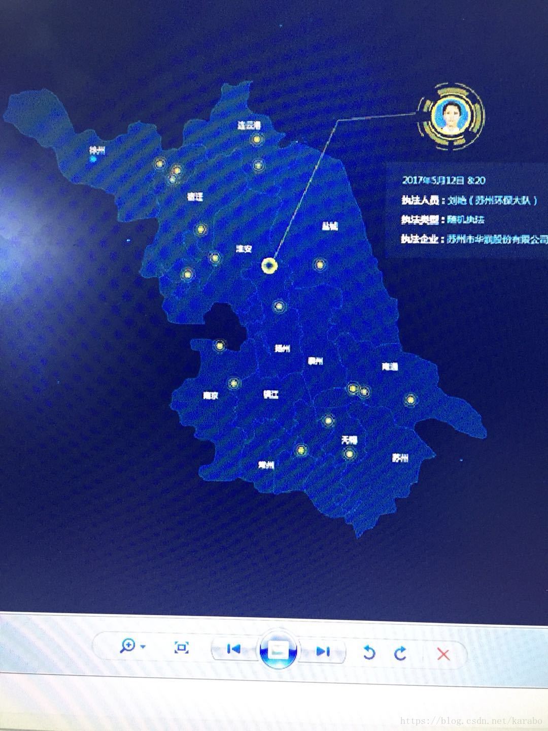 首先是自己做一份地图,然后在地图上显示一些正在移动的点,鼠标放到这些点上,就显示这些点的基本信息,就如这样的图: