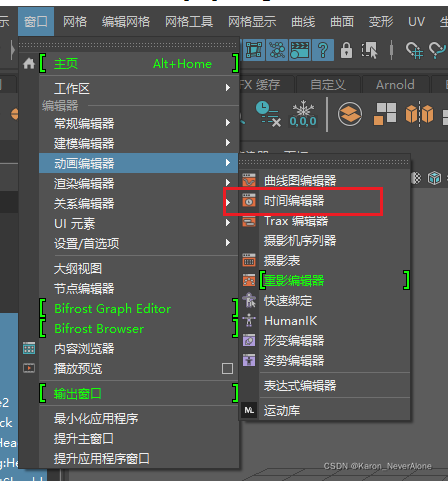 打开时间编辑器(这个外网有很多教程呢,可以去youtube搜maya time editor,国内的教程比较少)
