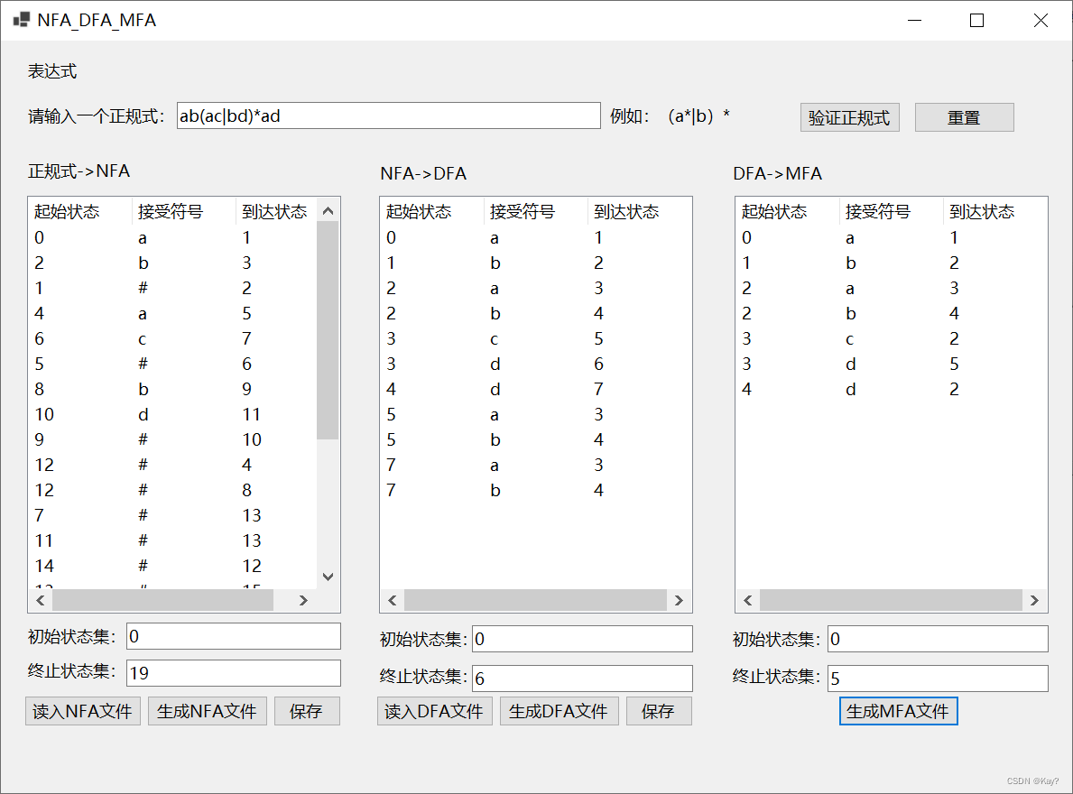 基于C#的编译原理教学系统展示了词法分析器设计、NFA-DFA-MFA转换等核心功能,通过实例演示了如何解析和转换源代码。