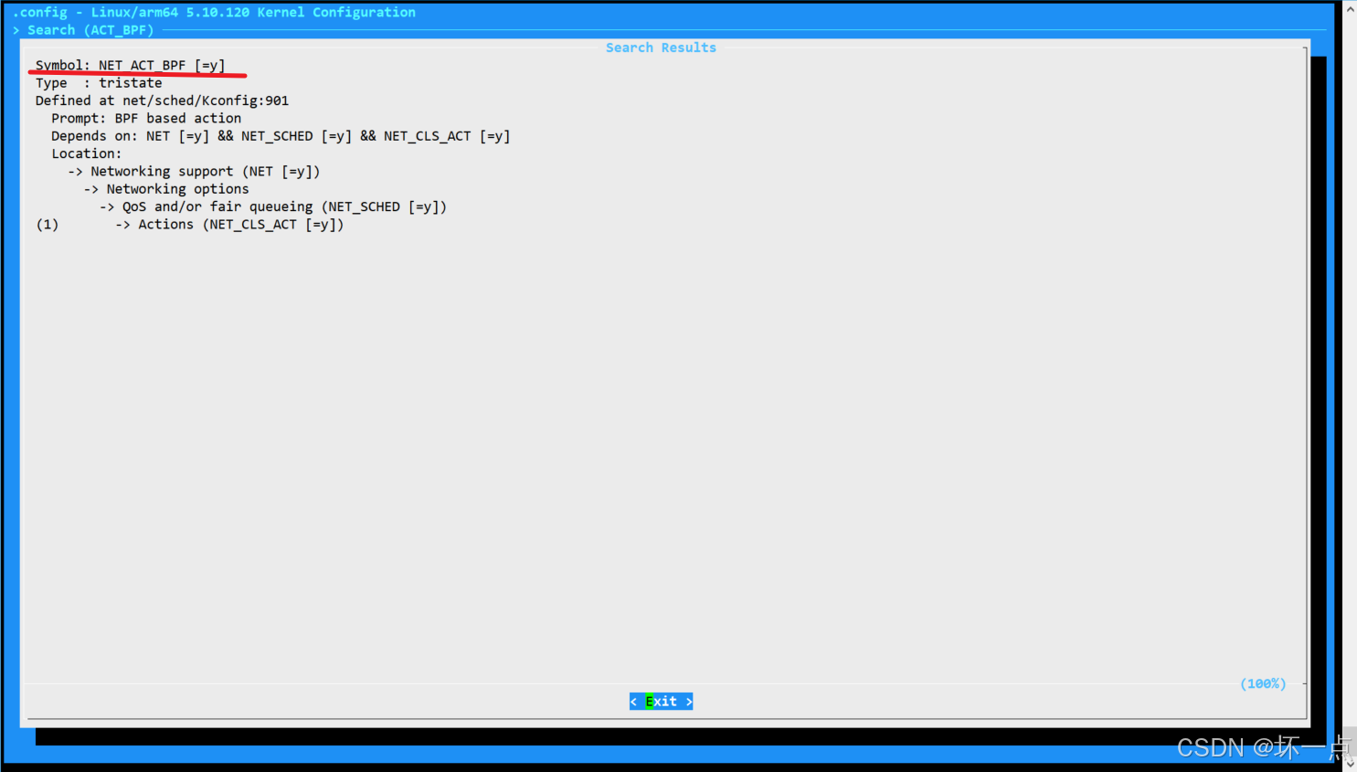 将“# CONFIG_NET_ACT_BPF is not set”改为“CONFIG_NET_ACT_BPF=y”