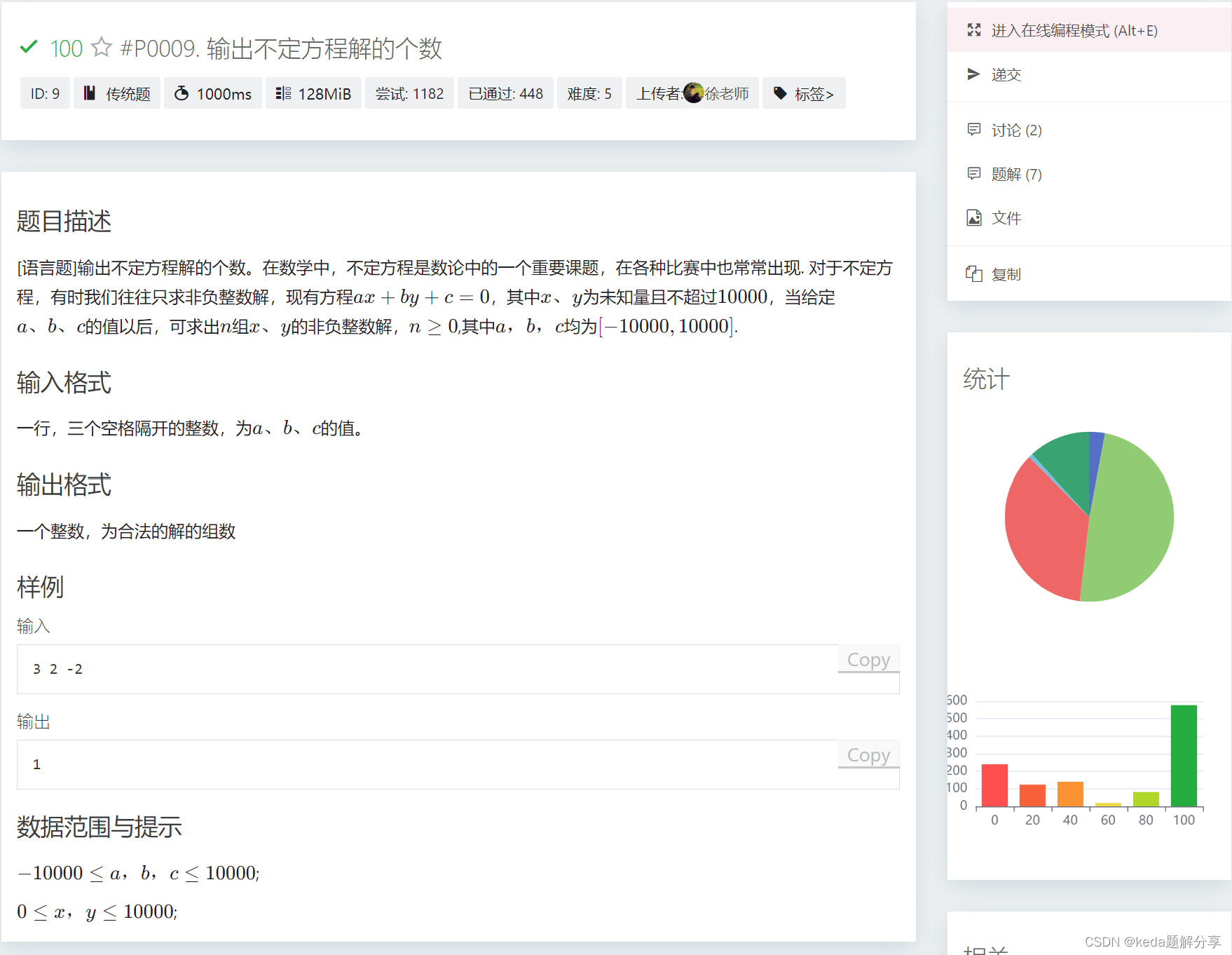 这是一个使用C++编程解决线性方程a*i+b*j+c=0的示例,通过两层for循环遍历i和j,寻找满足条件的解并累计次数。