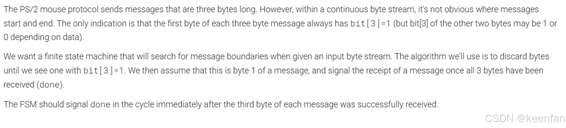 上述思路中,作者给的hint中说三个状态的话可能无法将done置1,所以添加了一个状态来给done置1。但是从我自己的解法出发,可以通过计数器的值对done是否置1进行判断,那么我认为在将发送每一个比特的状态拆分开的思路中,同样可以添加这样的一个参数来进行判断。