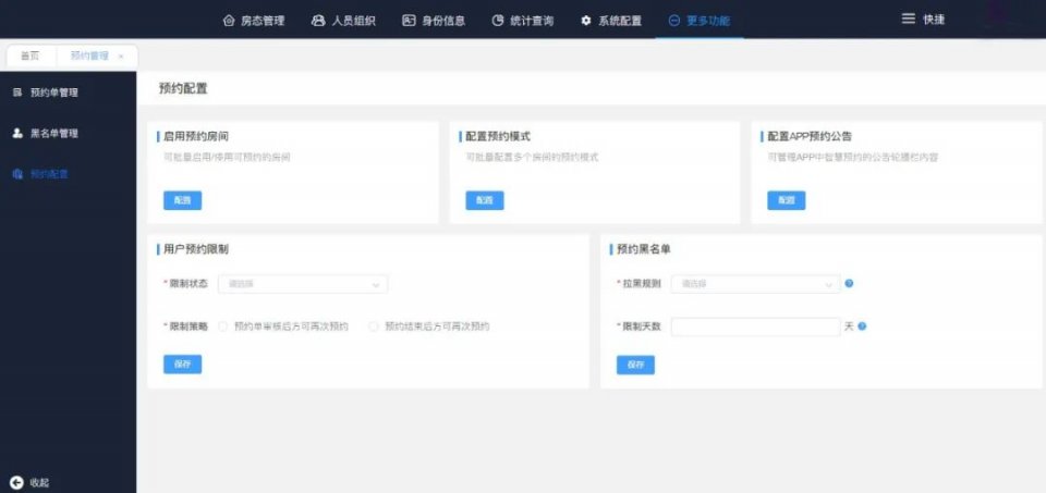 此外,预约应用还提供黑名单管理、预约公告、预约限制、移动审批以及各类批量操作功能,为管理者、预约者提供方便快捷的预约体验。