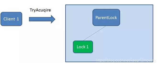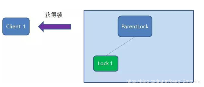 首先,在Zookeeper当中创建一个持久节点ParentLock。当第一个客户端想要获得锁时,需要在ParentLock这个节点下面创建一个临时顺序节点 Lock1。