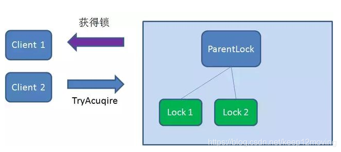 这时候,如果再有一个客户端 Client2 前来获取锁,则在ParentLock下载再创建一个临时顺序节点Lock2。