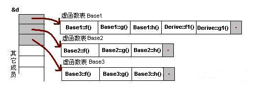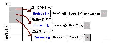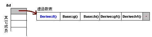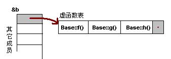 由b所指的内存中的虚函数表的f()的位置已经被Derive::f()函数地址所取代,于是在实际调用发生时,是Derive::f()被调用了。这就实现了多态。