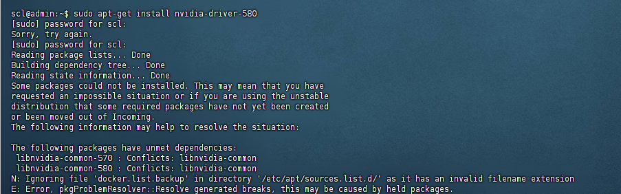 删除冲突的依赖后,重新安装显卡驱动: