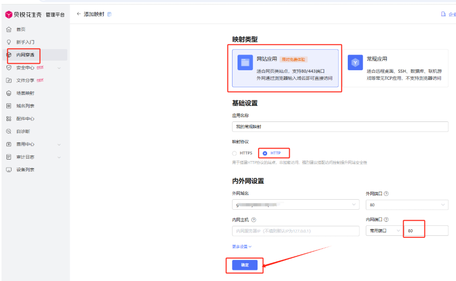 内网穿透配置,在注册是配置了,这一步可以不操作,如果要添加新的穿透,可以在这里继续添加: