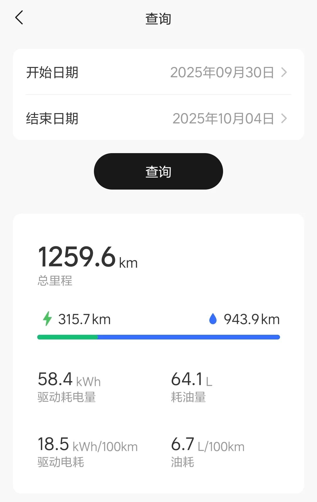 全程1200多公里车程,每程行车不超过4个小时。以下是这次行程的油电比例,简单来说,因为开的是增程电动车,可电可油,整个行程用油为主,充电是锦上添花的事情,不纠结。
